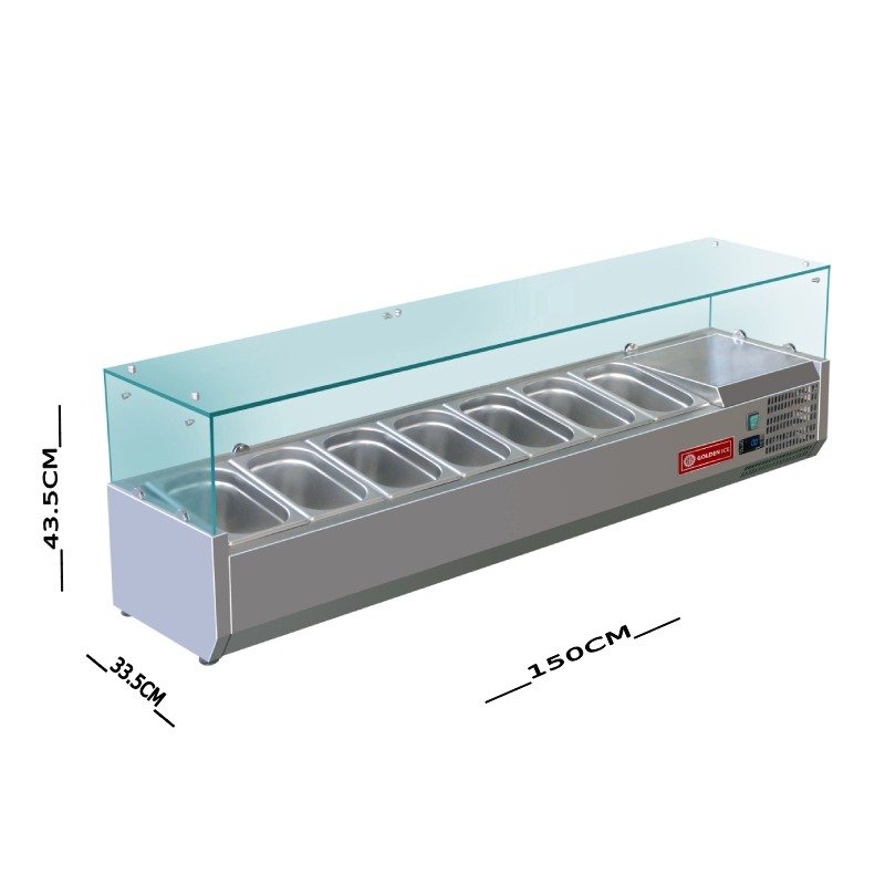 نظرًا لأهمية ثلاجات السلطات في المطاعم والكافيهات وفرنا لكم من خلال جولدن آيس أفضل ثلاجة عرض سلطات يمكن الاستعانة بها، تساع لـ 7 أطباق بحجم مميز لاستيعاب أكبر قدر ممكن من السلطات التي يمكن الحاجة إليها خلال اليوم في المطعم.