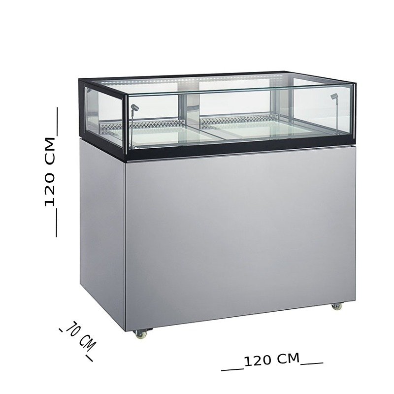- ثلاجة كيك ومشروبات مميزة تعمل بالكهرباء وتوفر الجهد الكهربي باحترافية.