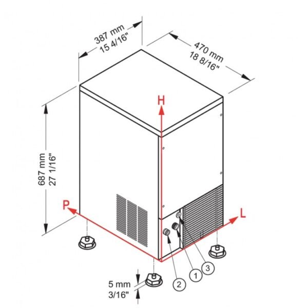 - تنتج ما يزيد عن 50 كيلوغرام من مكعبات الثلج، بقدرة تخزين تسع 23 كيلو غرام