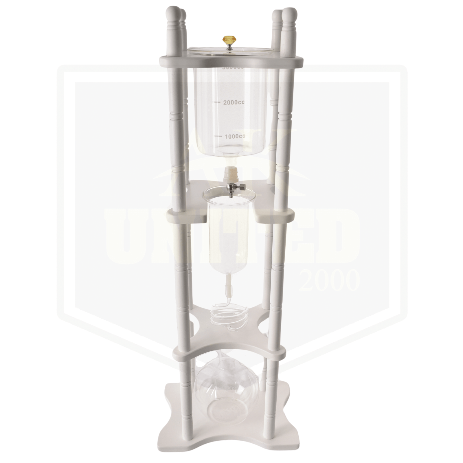 - برج التقطير البارد يتكون من ثلاث مراحل بالاضافة ثلاث قطع زجاجية منفوخة يدوياً، يعد البرج الخشبي الانيق إضافة مثالية وعملية للمقاهي الكبيرة وذلك لانه يُتيح لك تحضير كمية كبيرة من القهوة الباردة خلال مدة تصل الى 8 ساعات فقط، كل ماتحتاجة إليه هو ثلج وماء وقهوة طازجة لتحضير أفضل وألذ قهوة مقطرة باردة.