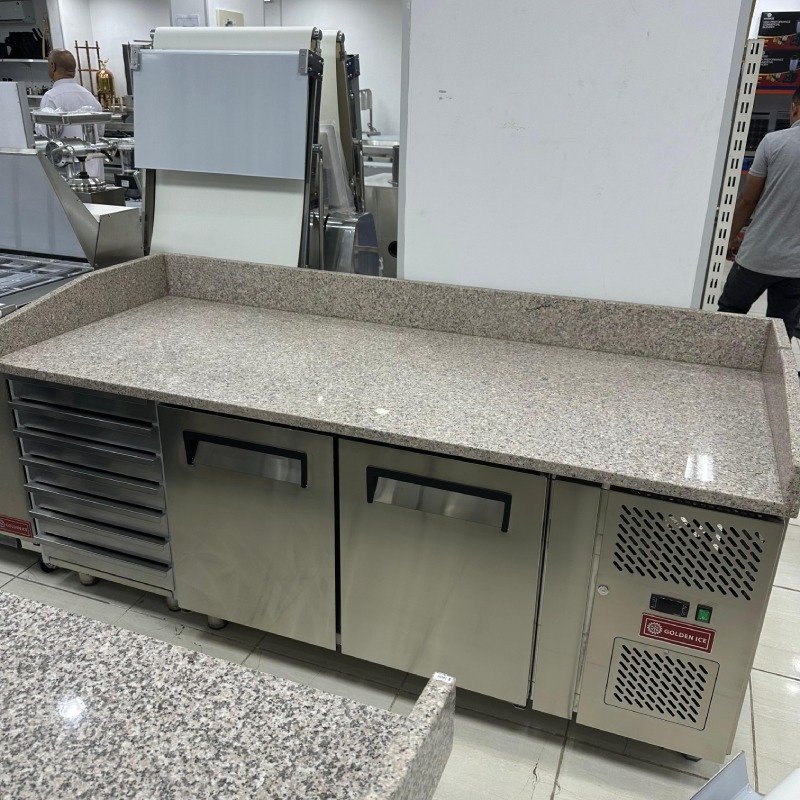 ثلاجة بيتزا ستيل مع رخامة 2 باب وادراج 2 متر