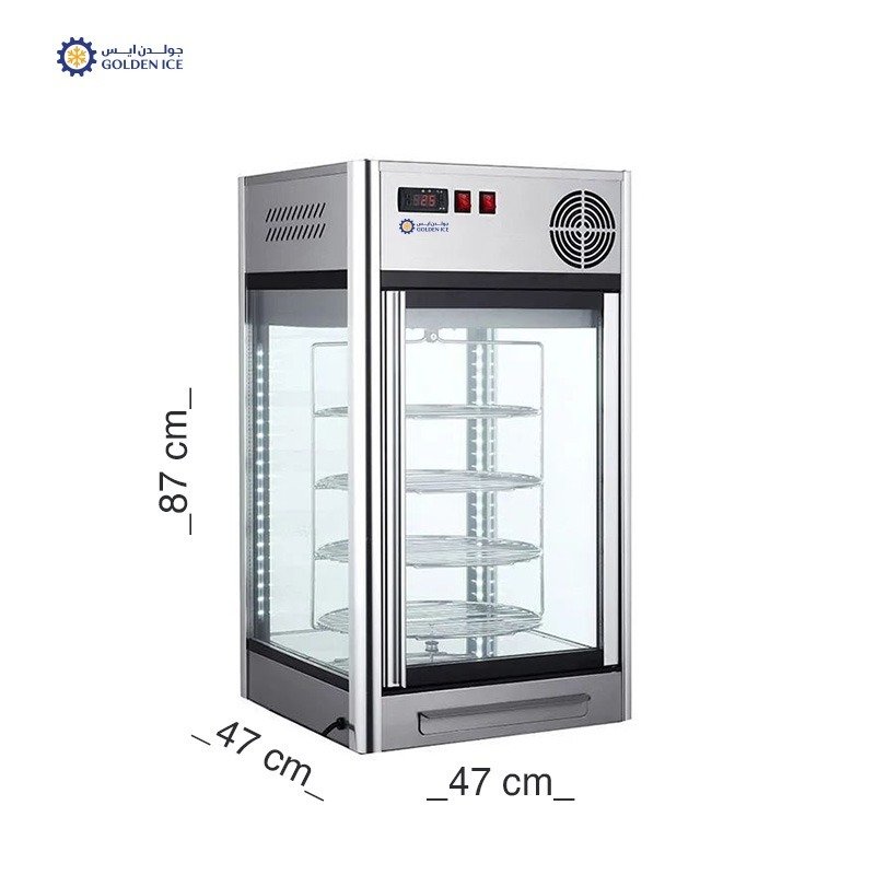 - زجاج شفاف من جميع الجهات لعرض الكيك بشكل كامل وواضح.