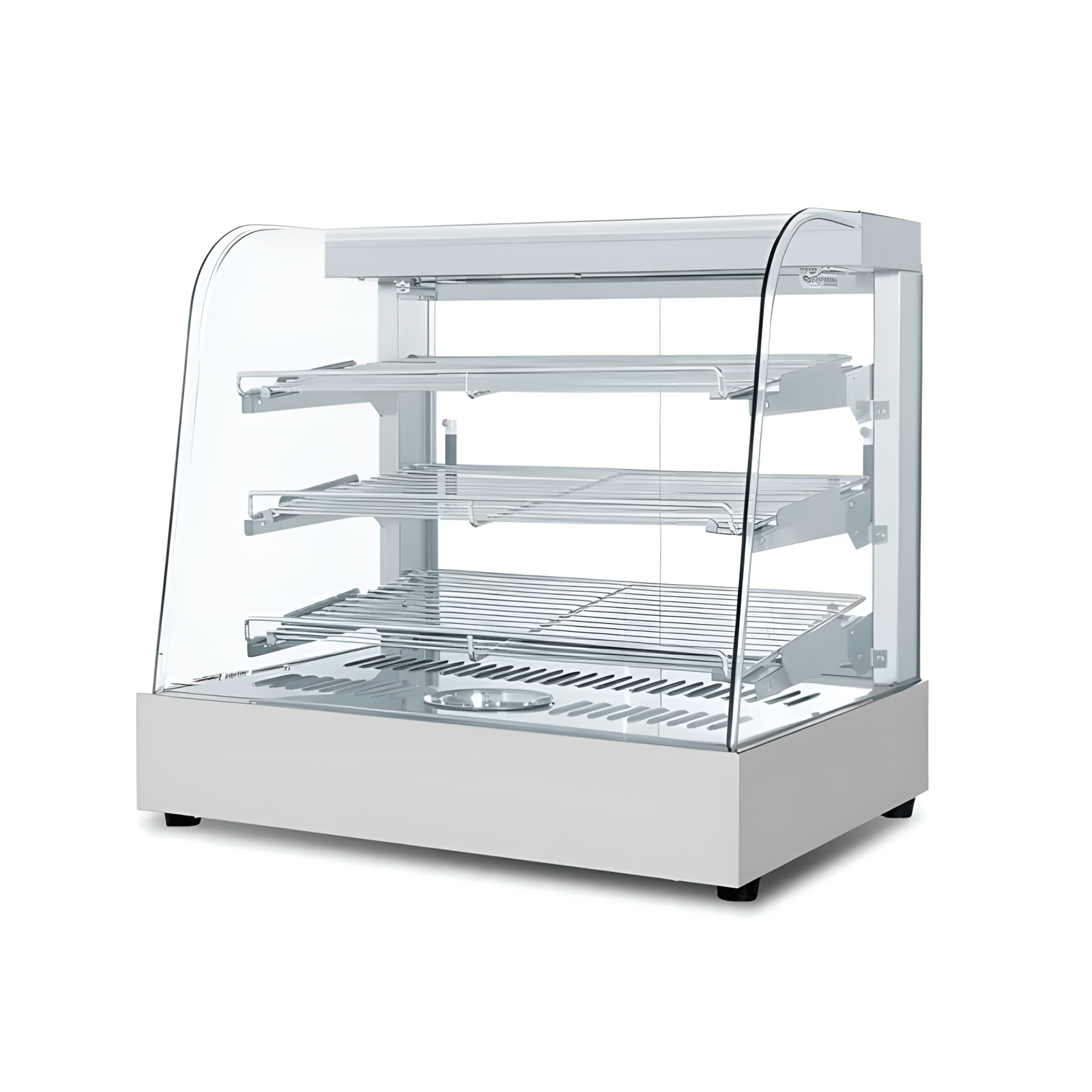 - يحتوي سخان عرض الطعام على أرفف عرض من الفولاذ المقاوم للصدأ قابلة للتعديل وأبواب منزلقة وزجاج مقوى شفاف للغاية لسهولة الوصول ورؤية رائعة للمنتج.