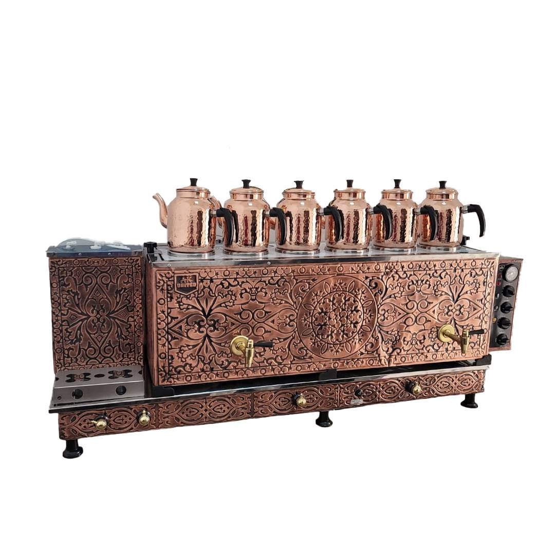 سماور الشاي 6 اباريق نحاسي غاز و كهرباء تركي من يونايتد