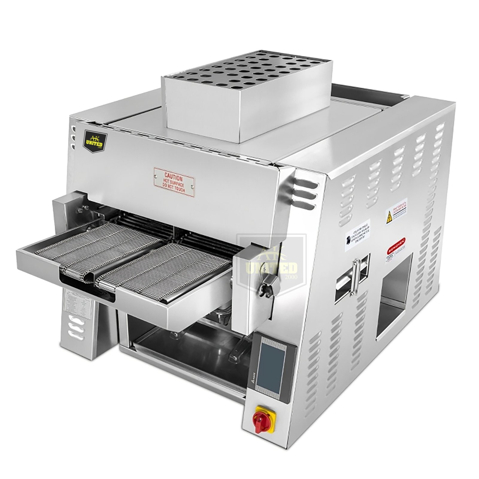 - تحتوي الشواية على حزام بعرض يبلغ 113 مم، مما يسمح بطهي عدد كبير من قطع الستيك والبرجر في كل دفعة.