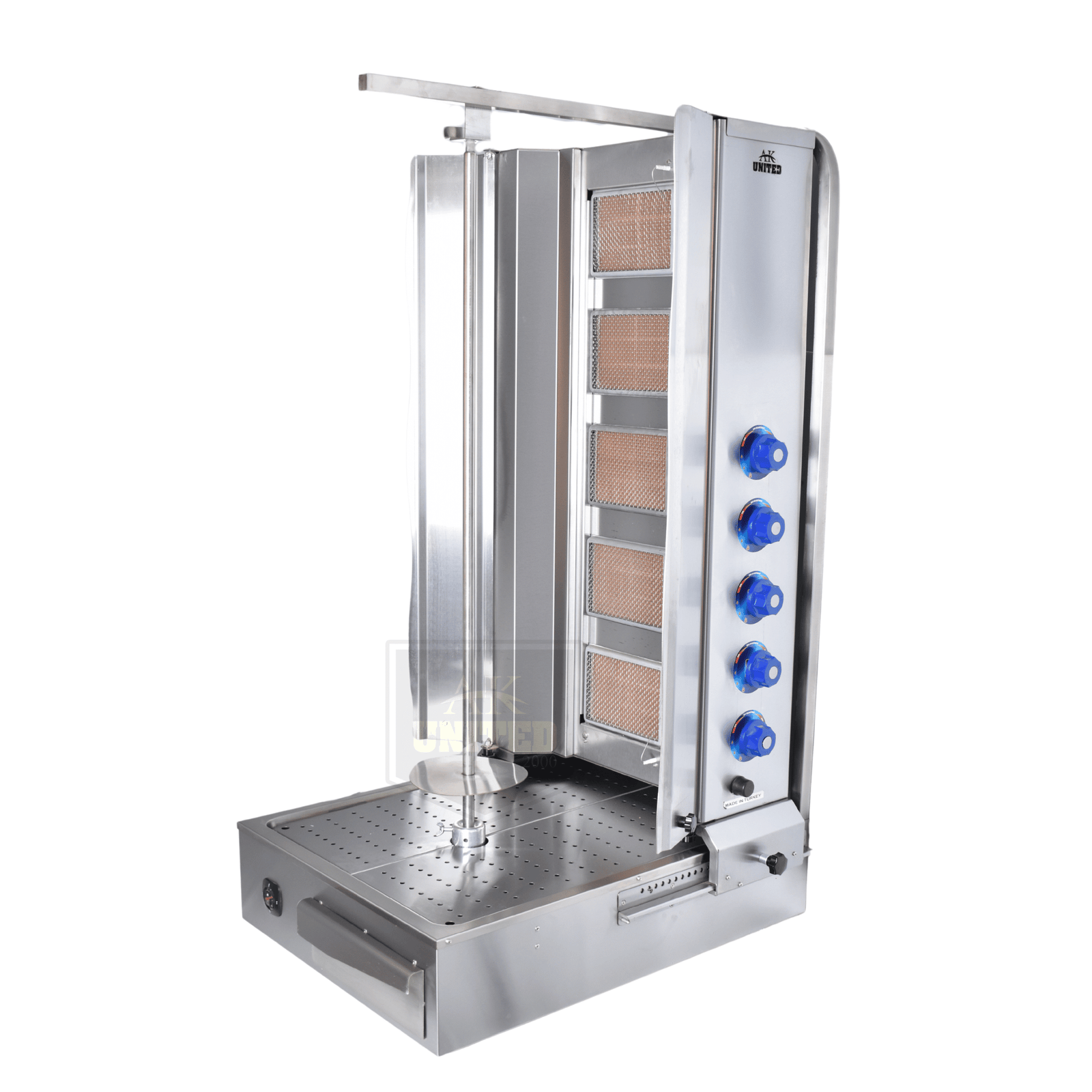 - تُعد أفضل شواية غاز 5 عيون قاعدة سفلية من يونايتد من المنتجات المبتكرة والفعالة التي تلبي احتياجات محبي الشاورما.
