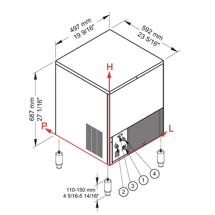 - مزودة من الأسفل بأربعة أرجل مصنوعة من مادة الفولاذ المقاوم للصدأ.