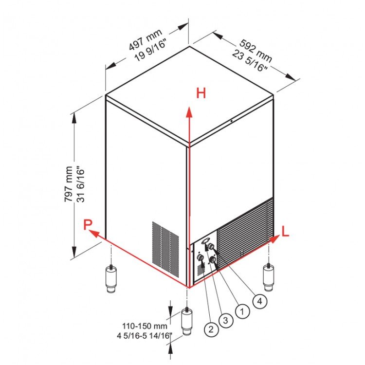 - تنتج ما يزيد عن 50 كيلوغرام من مكعبات الثلج، بقدرة تخزين تسع 23 كيلو غرام