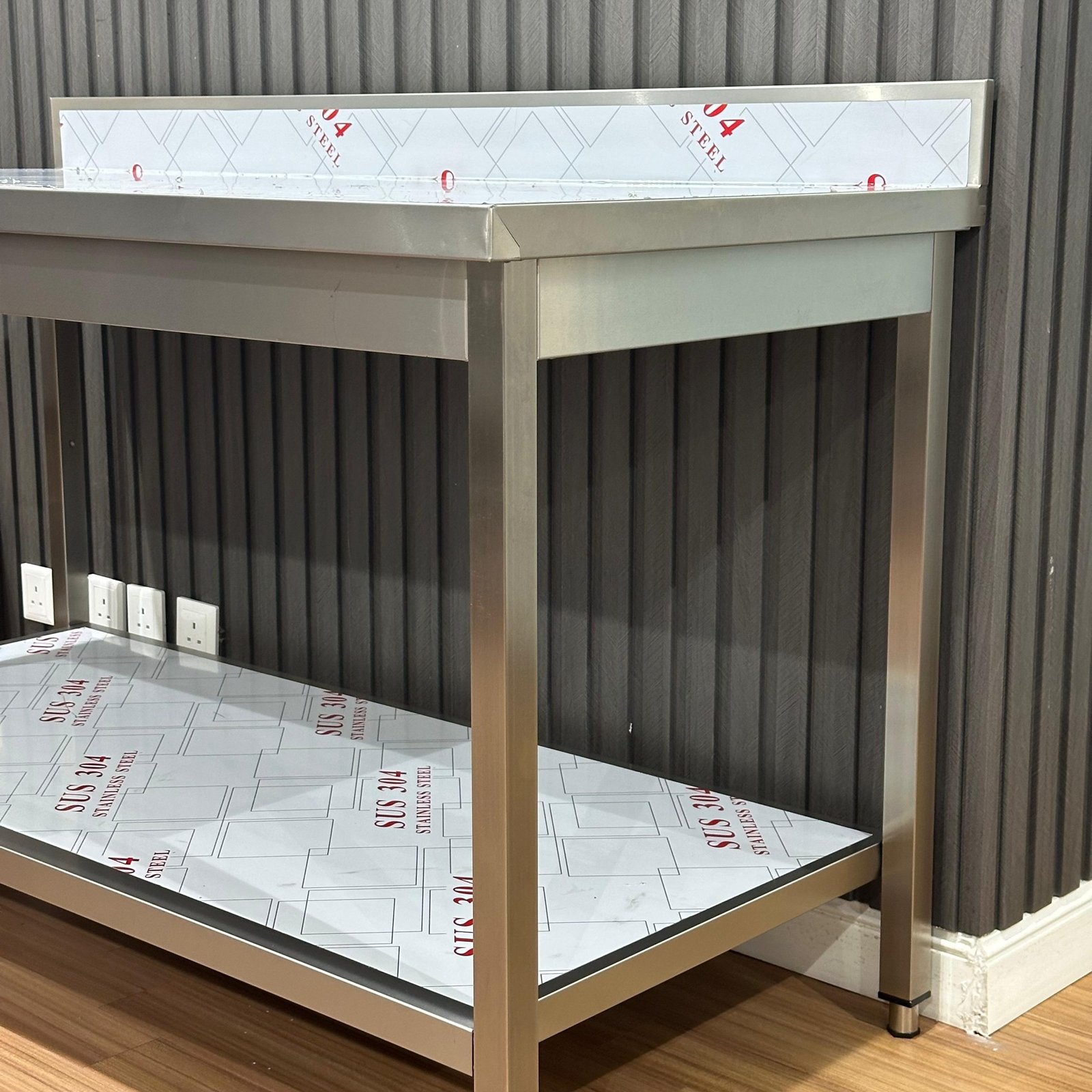 مصنوعة بالكامل من الاستانلس ستيل الغذائي عالي الجودة، المقاوم للصدأ والتآكل مما يجعل طاولة العمل مناسبة للاستخدام المكثف في اغلب بيئات المهنية.