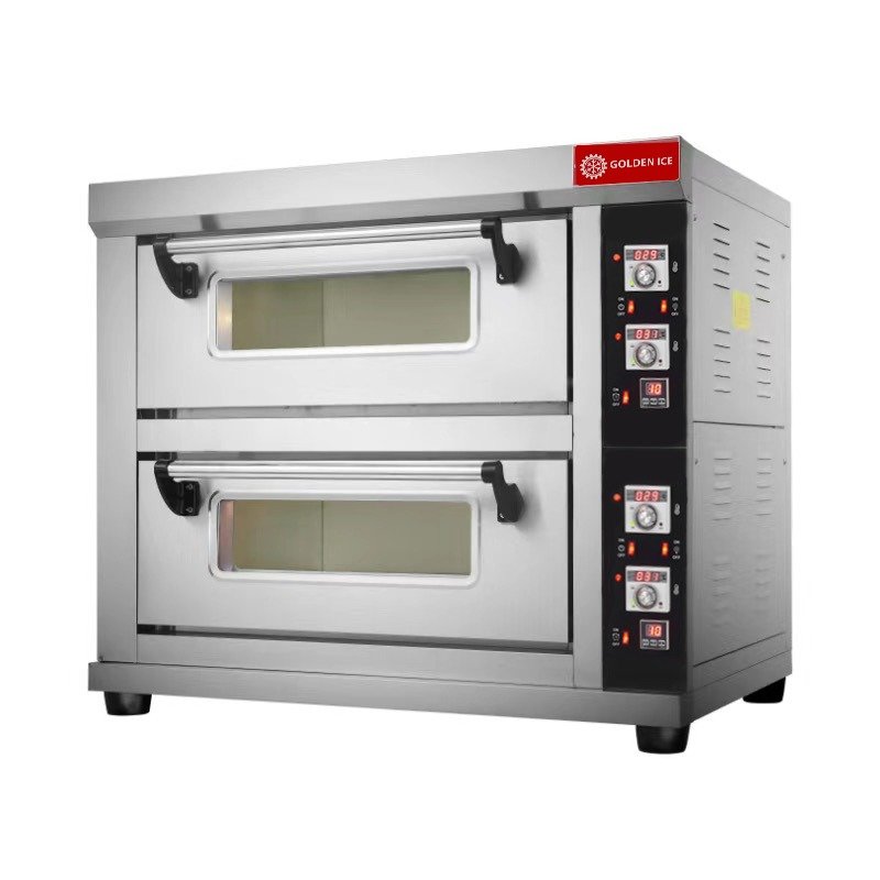تقدم جولدن آيس فرن كهربائي جديد مكون من طابقين يساع كل طابق منه 1 صينية بحجم مناسب لطهي كمية كبيرة من الطعام، يتمتع بالتحكم المنفصل في كل دور، ما يجعله الأنسب للمطاعم ومشاريع الطعام لينجز العمل مع الشيف ويصنع أكثر من صنف في نفس الوقت.
